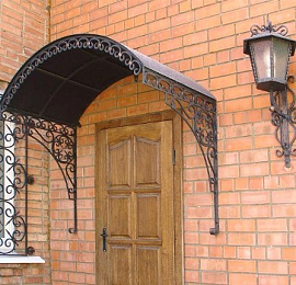 Козырек из листа металла с элементами ковки. Цена указана за козырек размером 1*1м с полимерным покрытием, рама козырька выполнена из трубы профильной 20*20мм, кованые элементы из квадрата 10мм, зашит листом металла толщиной 2мм. Стоимость козырька другого размера, монтажа и доставки уточняйте отдельно у менеджеров компании.