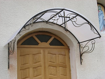 Козырек из поликарбоната с элементами ковки. Цена указана за козырек размером 1*1м с полимерным покрытием, рама козырька выполнена из трубы профильной 20*20мм, кованые элементы из квадрата 10мм, зашит листом прозрачного поликарбоната толщиной 10мм. Стоимость козырька другого размера, монтажа и доставки уточняйте отдельно у менеджеров компании.
