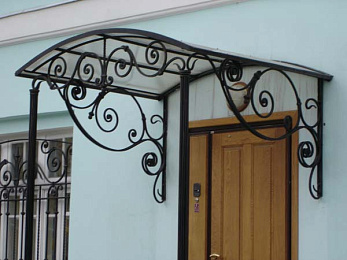 Кованый козырек на подпорных столбах