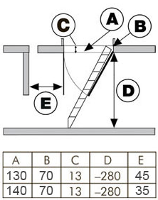 ЛестницаПроём: 1300 х 700, 1400 х 700 мм