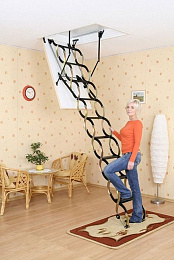 ЛестницаВсе элементы лестницы выполнены из экологически чистых материалов и обработаны веществами, не содержащими тяжелых металлов. На ступенях антискользящие насечки. Короб лестницы деревянный. Термоизоляционная крышка типа "сэндвич", толщиной 30 мм, утеплена пенопластом, облицована с двух сторон ДВП белого цвета. Короб люка с уплотнителем, высотой 140 мм. В комплекте деревянный стержень для открывания лестницы
