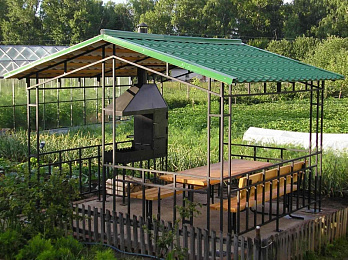 Беседка с покрытием краской по металлу. Материал изготовления : тр. проф.20*20.Размер : 3000*3000 мм.