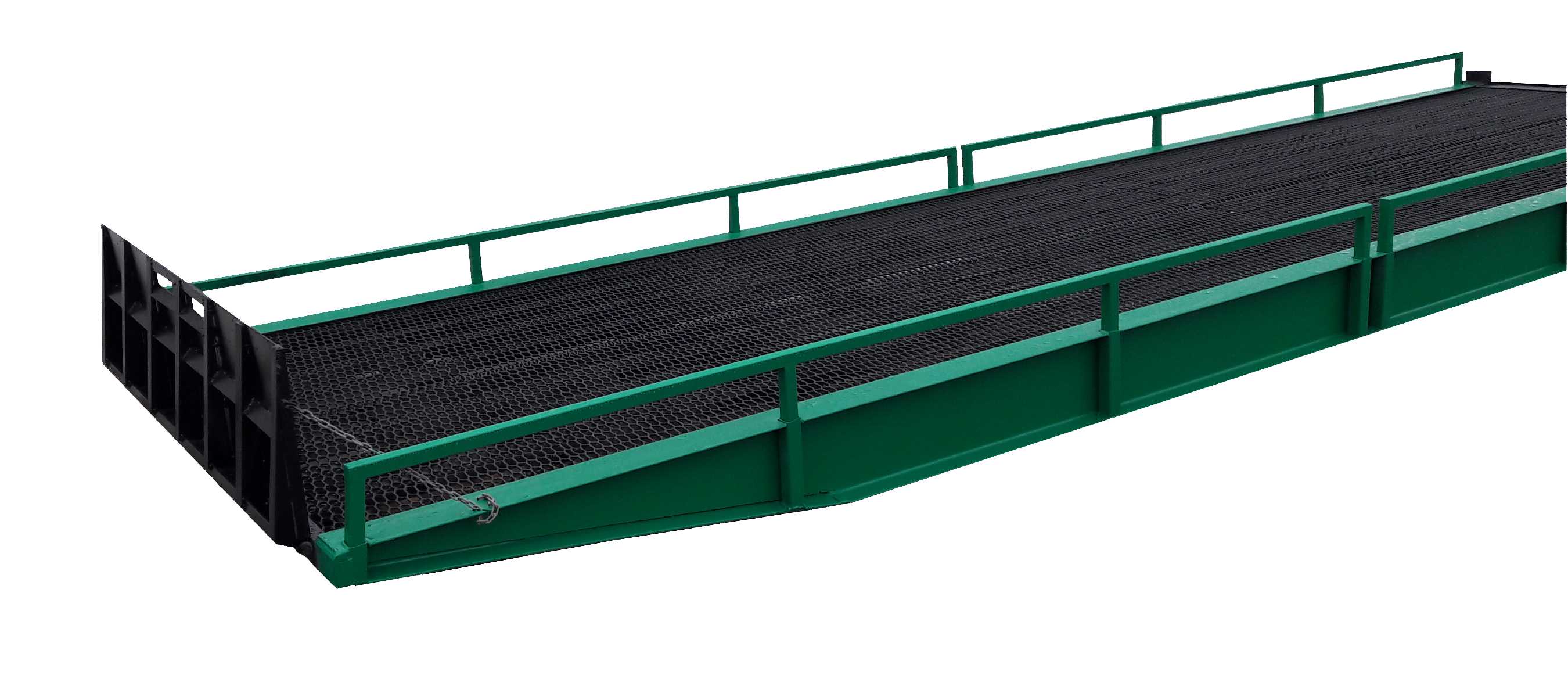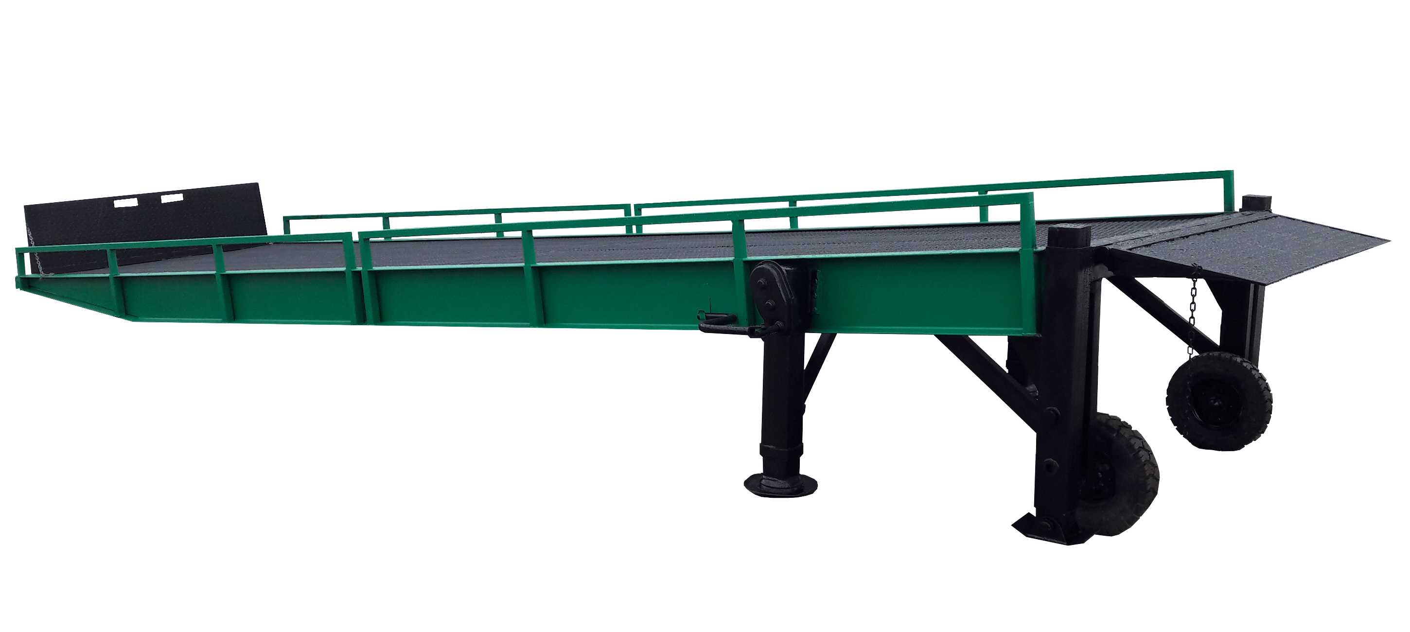 Эстакада должна быть установлена на открытой площадке со свободным доступом транспортных средств.Во время работы эстакада (въезд) должна опираться на нижнюю точку наклонной части и регулируемые опоры. При необходимости, в случае значительного подъема или опускания погрузочной поверхности транспортного средства,производится регулировка высоты площадки эстакады.