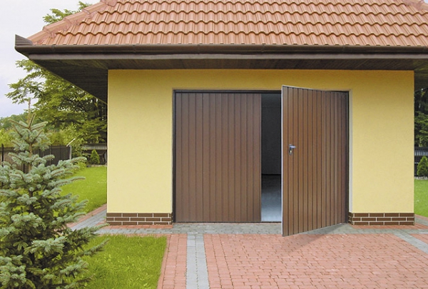 Конструктивно выполненные из профнастила гаражные распашные ворота выглядят вполне современно и привлекательно. Гаражные ворота из профнастила прекрасно подходят для монтажа не только на производственной территории, но и для оборудования гаражей на дачах и загородных участках.