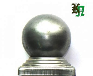 Навершие сталь, штамповка. Способ крепления - электросварка, газосварка, полуавтомат. Используется при изготовлении кованых ограждений, на начальный столб лестничных перил, на кованых кроватях и других изделиях.