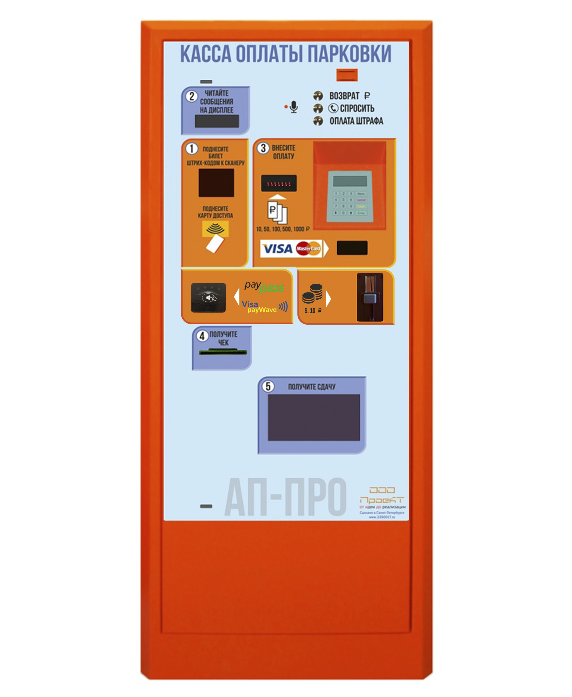Банковский терминал. Устанавливается, если на парковке предусмотрена оплата банковскими картами. К оплате принимаются карты Visa и MasterCard.