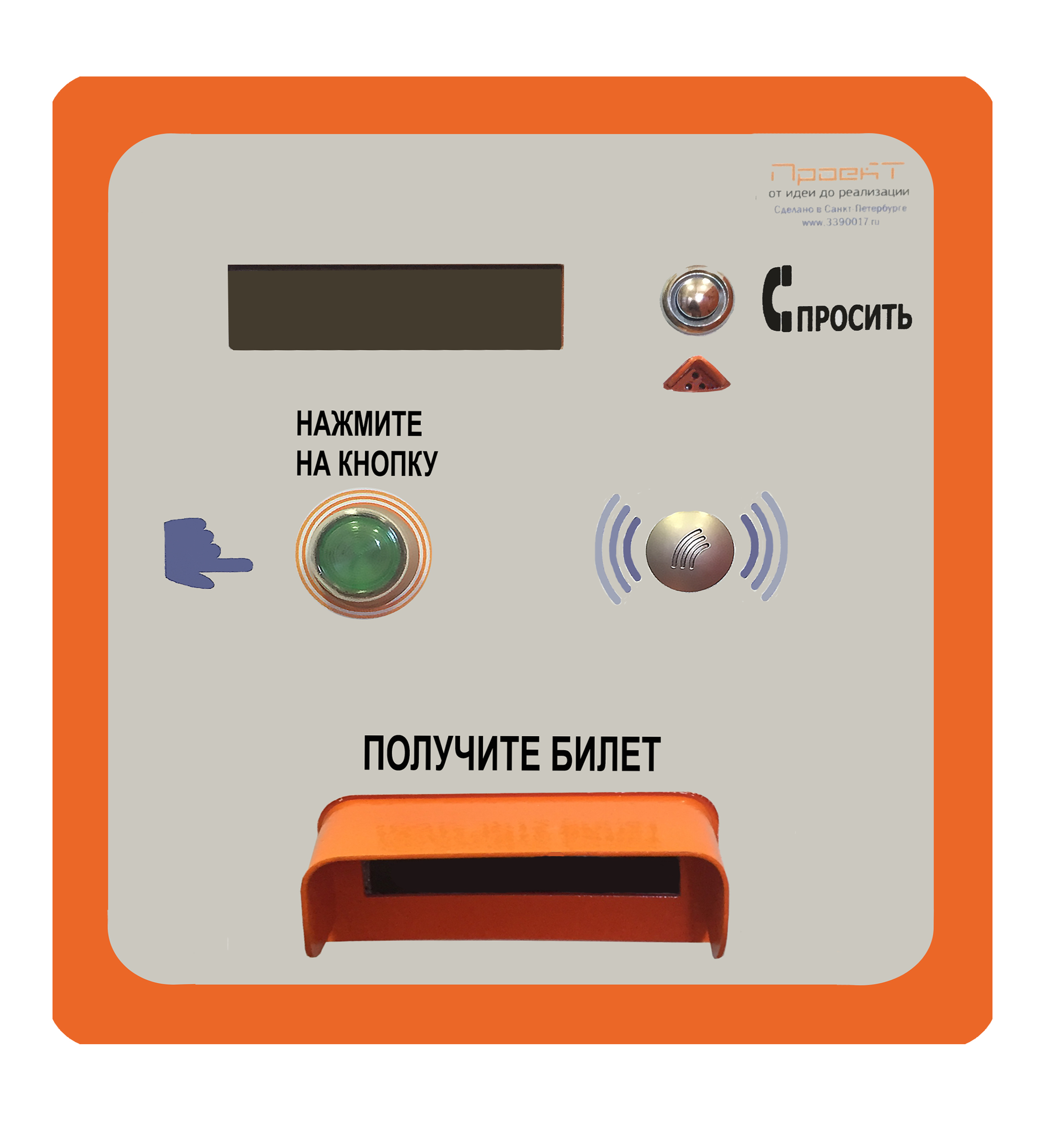 Посетитель нажимает соответствующую кнопку. После чего принтер, установленный в корпусе въездной стойки, печатает разовый билет со штрих-кодом и выдает его посетителю. На билете указывается: время въезда, тарифы на парковку, дополнительная информация.