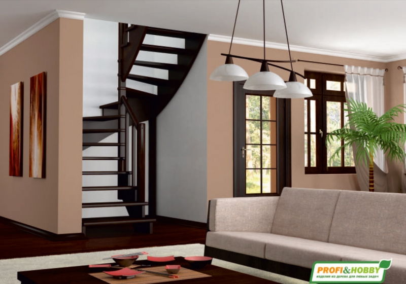 Базовый комплект включает в себя деревянные элементы лестницы и ограждения без какого-либо покрытия. Вы можете заказать у нас покраску лестницы в цвета, отвечающие особенностям вашего помещения.