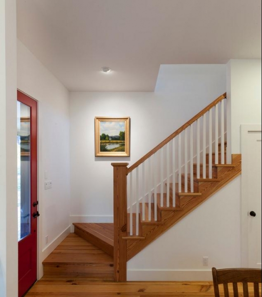 Деревянная лестница с забежными ступенями