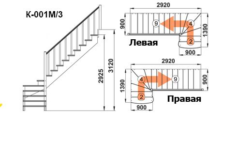 Высота от пола нижнего этажа до пола верхнего этажа: 3120 мм