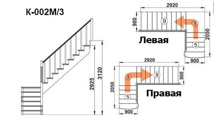 Высота лестницы: 2925 мм