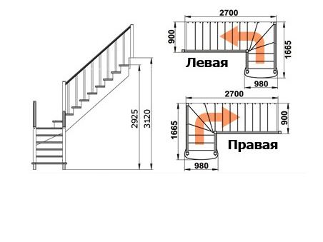 Лестница Высота от пола нижнего этажа до пола верхнего этажа: 3120 мм