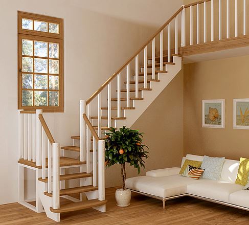 Базовый комплект включает в себя деревянные элементы лестницы и ограждения без какого-либо покрытия. Вы можете заказать у нас покраску лестницы в цвета, отвечающие особенностям вашего помещения.