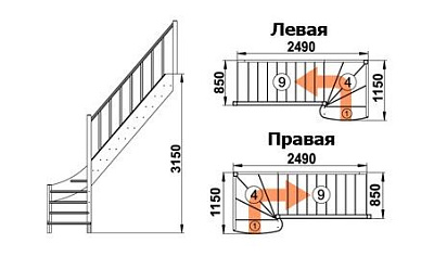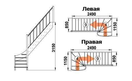 Высота от пола нижнего этажа до пола верхнего этажа: 3150 мм