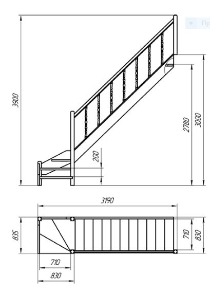 Увеличение высоты подъёма достигается добавлением подставки; уменьшение высоты достигается изъятием необходимого количества ступеней, начиная с верхней; точная подгонка по высоте за счет размера верхнего шага. Высота от пола нижнего этажа до пола верхнего этажа: 3000 мм