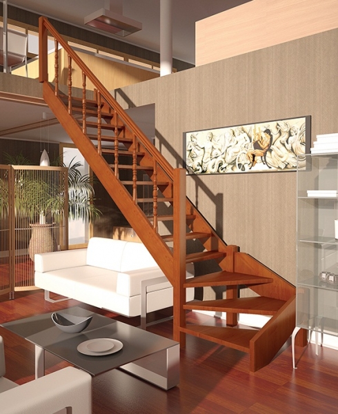 Базовый комплект включает в себя деревянные элементы лестницы и ограждения без какого-либо покрытия. Вы можете заказать у нас покраску лестницы в цвета, отвечающие особенностям вашего помещения.