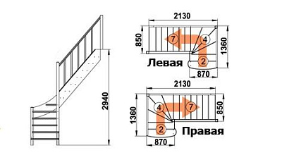 Высота от пола нижнего этажа до пола верхнего этажа: 2940 мм