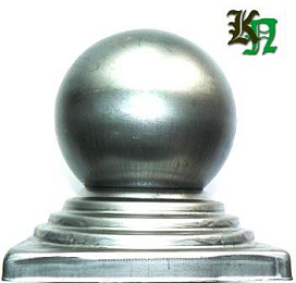 Навершие сталь, штамповка. Способ крепления - электросварка, газосварка, полуавтомат. Используется при изготовлении кованых ограждений, на начальный столб лестничных перил, на кованых кроватях и других изделиях.